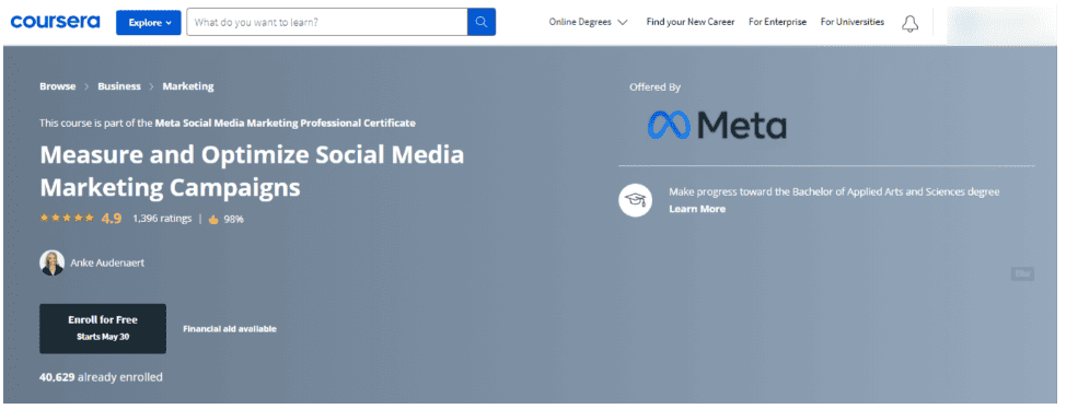 Meta Social Media Marketing Professional Certificate Coursera