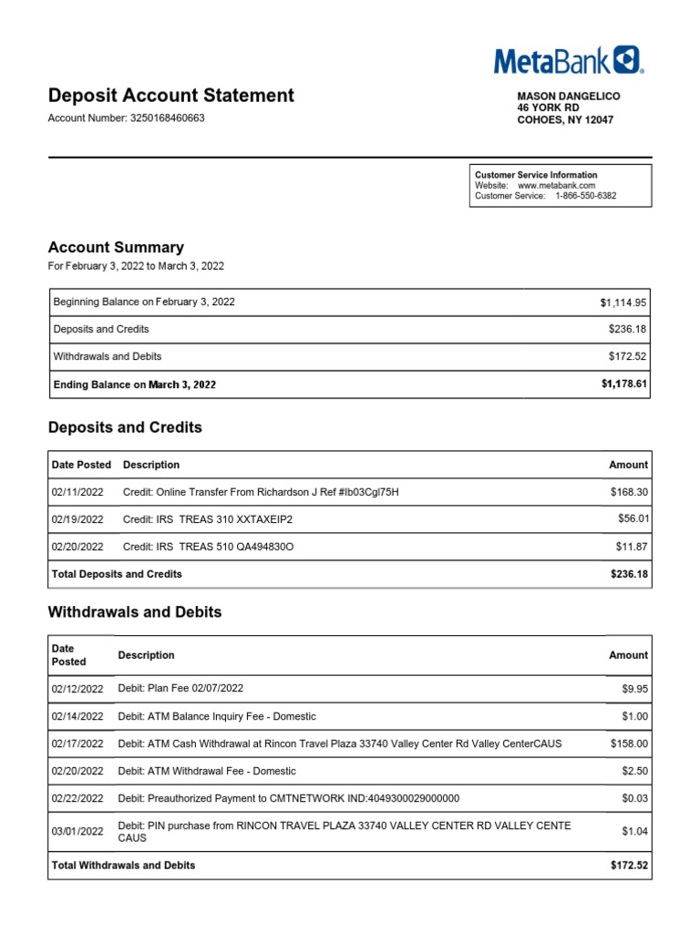 Editable Metabank Bank Statement Template Sample in 2023 Statement