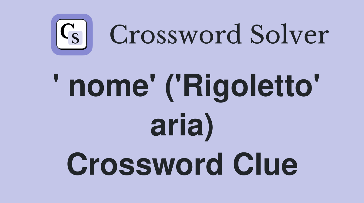 #39 nome #39 ( #39 Rigoletto #39 aria) Crossword Clue Answers Crossword Solver