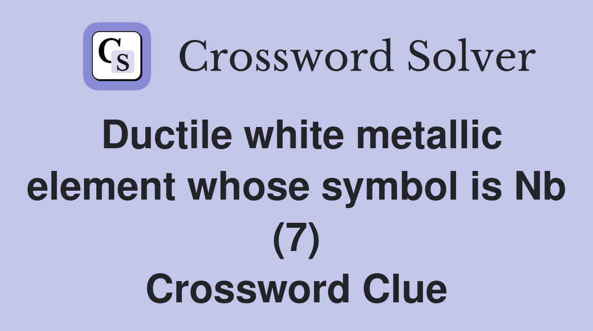 White metallic element whose symbol is Nb (7) Crossword Clue Answers