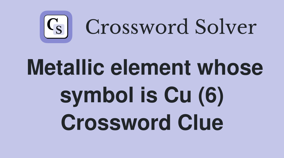 Metallic element whose symbol is Cu (6) Crossword Clue Answers