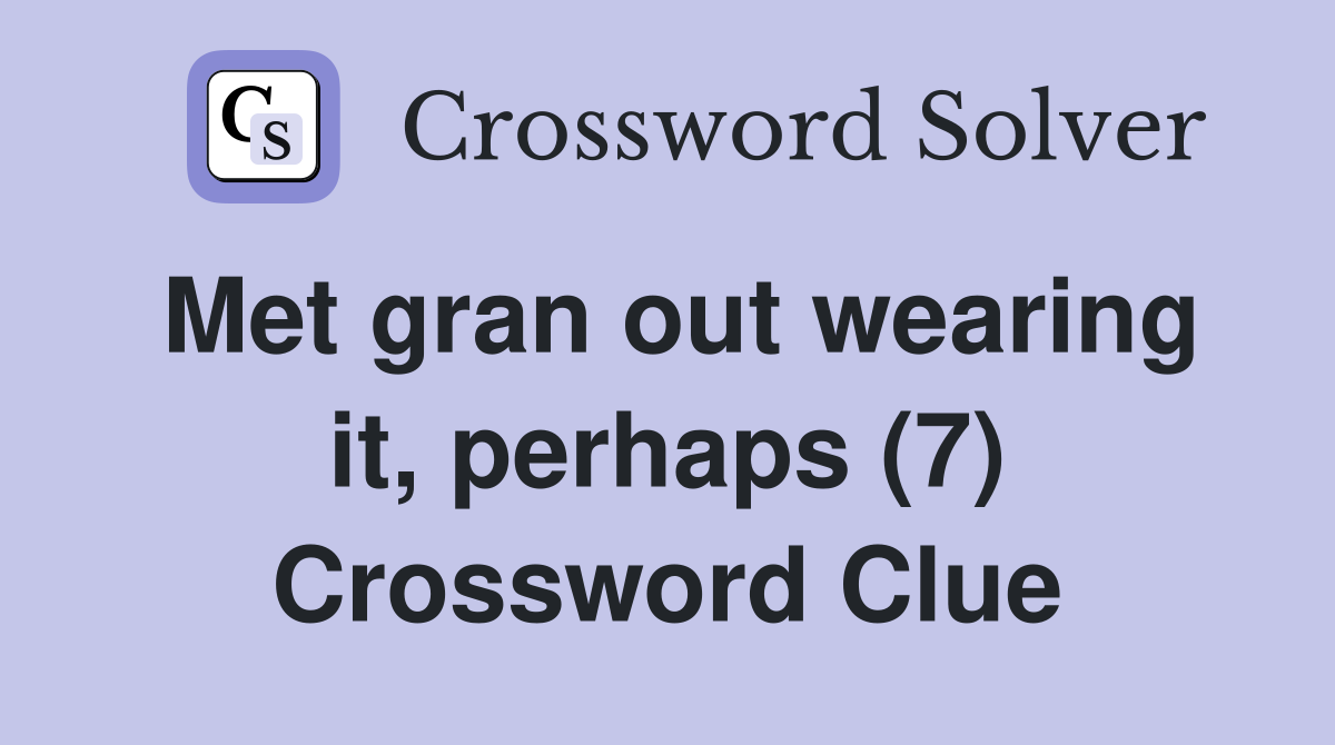 Met gran out wearing it perhaps (7) Crossword Clue Answers