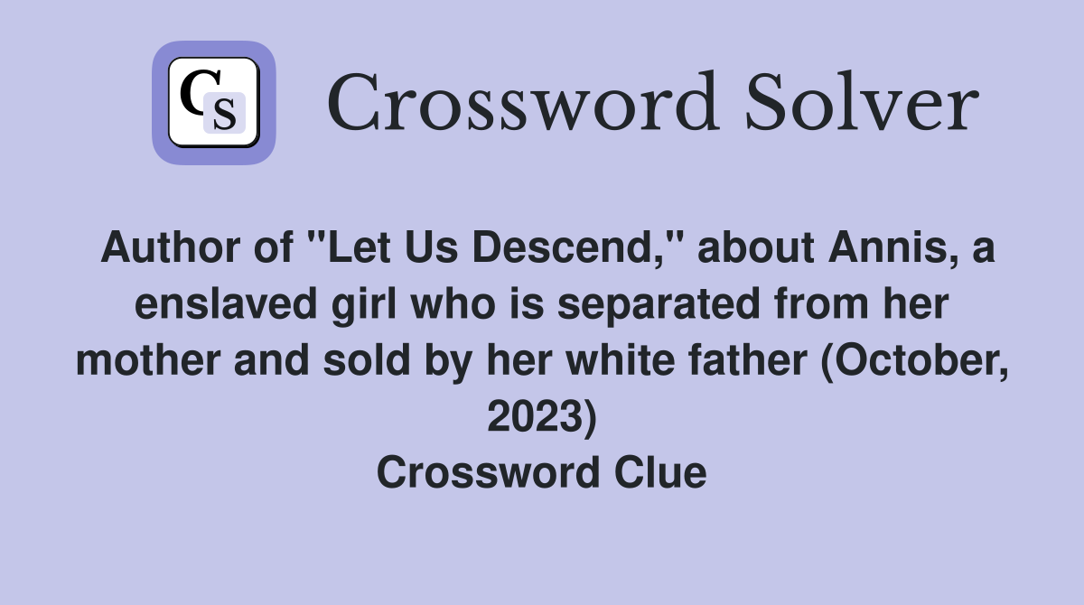 Author of quot Let Us Descend quot about Annis a enslaved girl who is