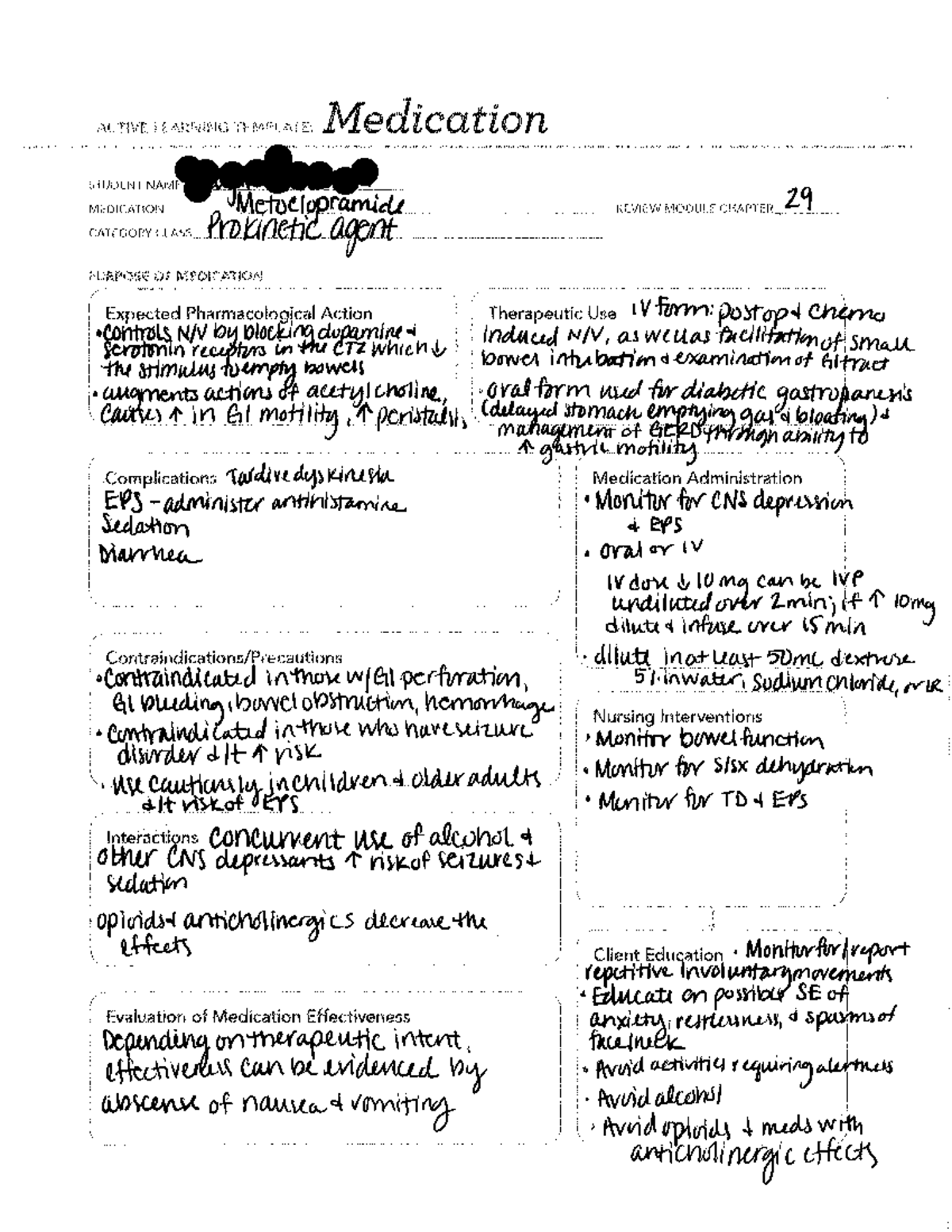 Metoclopramide ATI templates ACTIVE LEARNING TEMPLATE: Medication