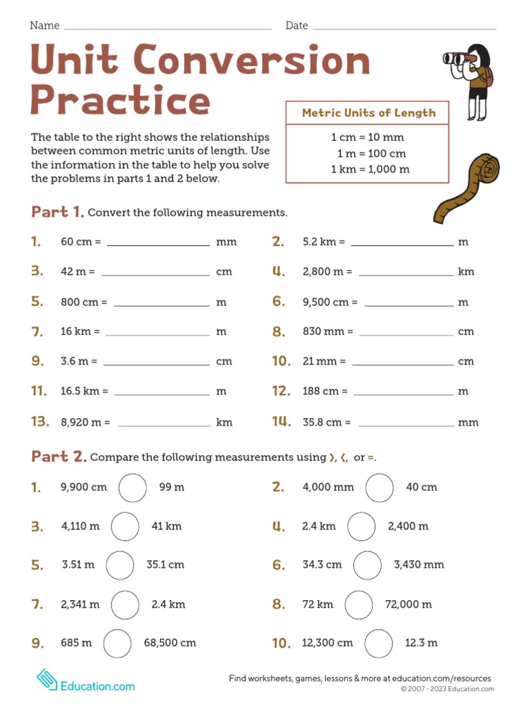 Math Unit Conversion Length Worksheet with Answers Printable Metric