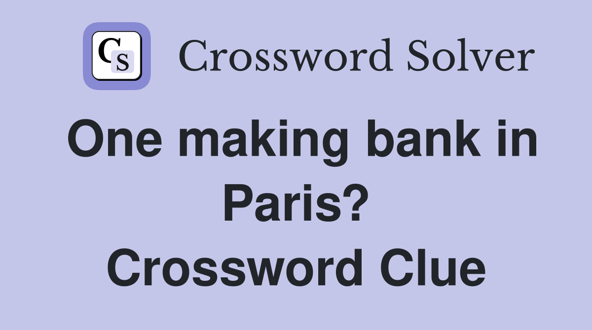 One making bank in Paris? Crossword Clue Answers Crossword Solver