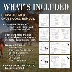 Horse themed Crossword Puzzle Bundle Horse Camp Activity or Game