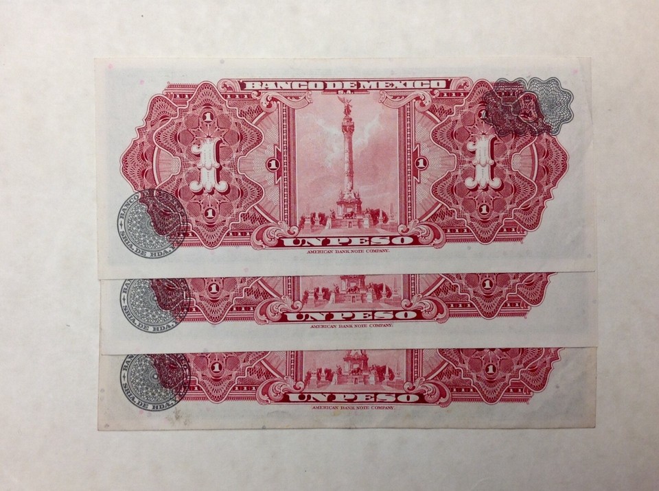 Lot of 3 1969 Mexico One Peso Aztec Calendar Banknotes FREE US