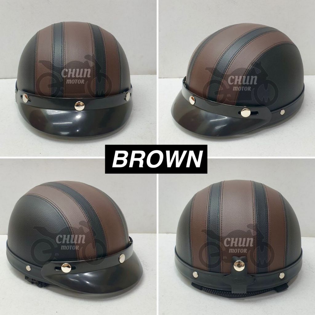 Steng Kura Kura Half Leather Helmet Open Face Half Helmet Motor with