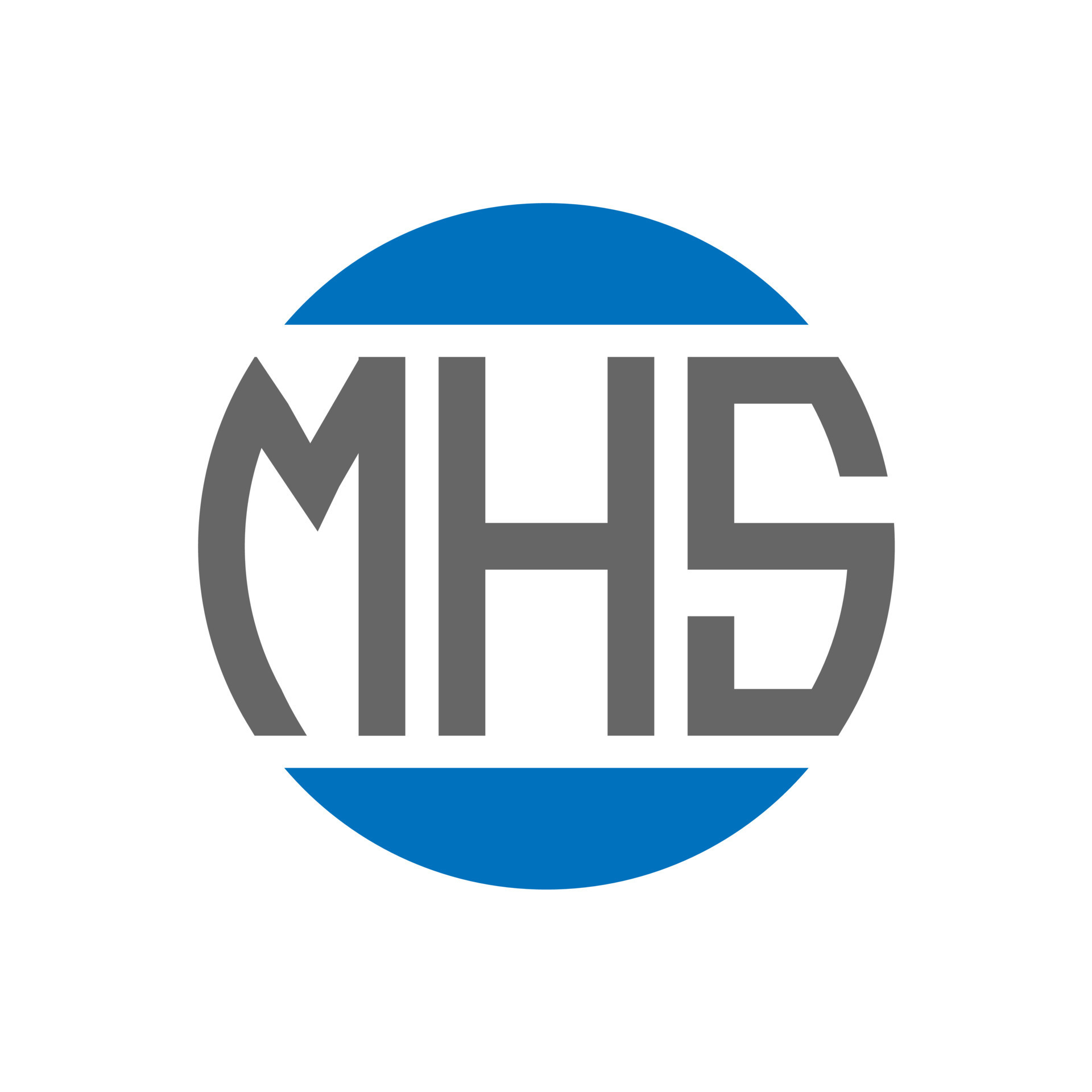 MHS letter logo design on white background MHS creative circle letter