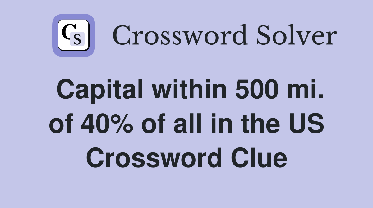 Capital within 500 mi of 40% of all in the US Crossword Clue Answers