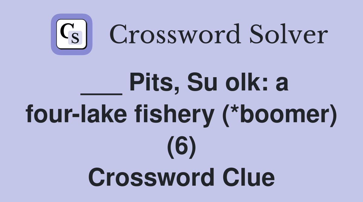Pits Su olk: a four lake fishery (*boomer) (6) Crossword Clue