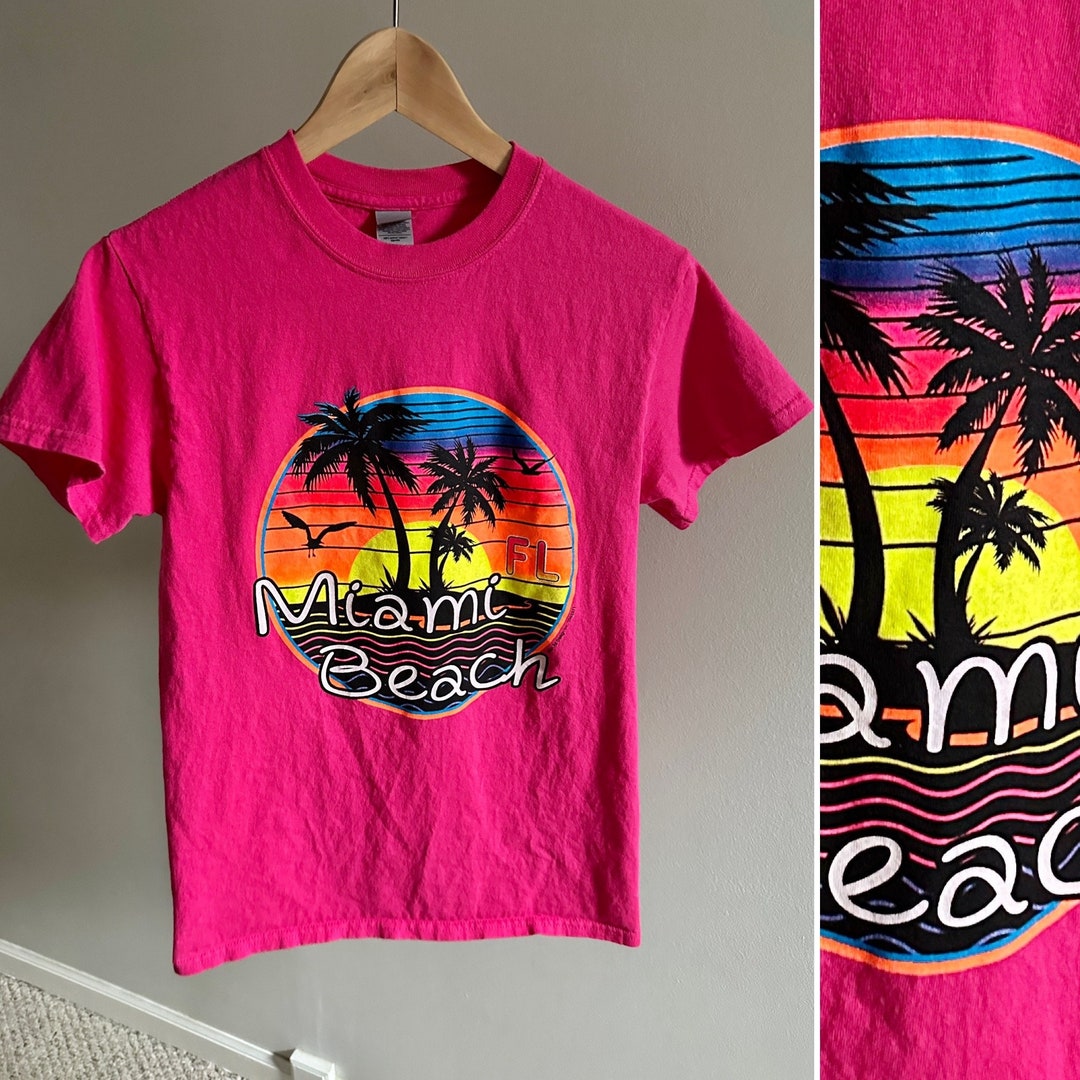 Vintage Miami Beach T Shirt Vintage 90s Gildan Cotton T Shirt Bright