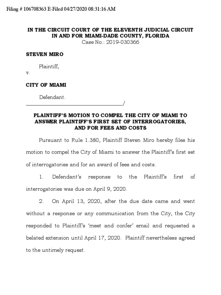 In The Circuit Court Of The Eleventh Judicial Circuit In And For Miami