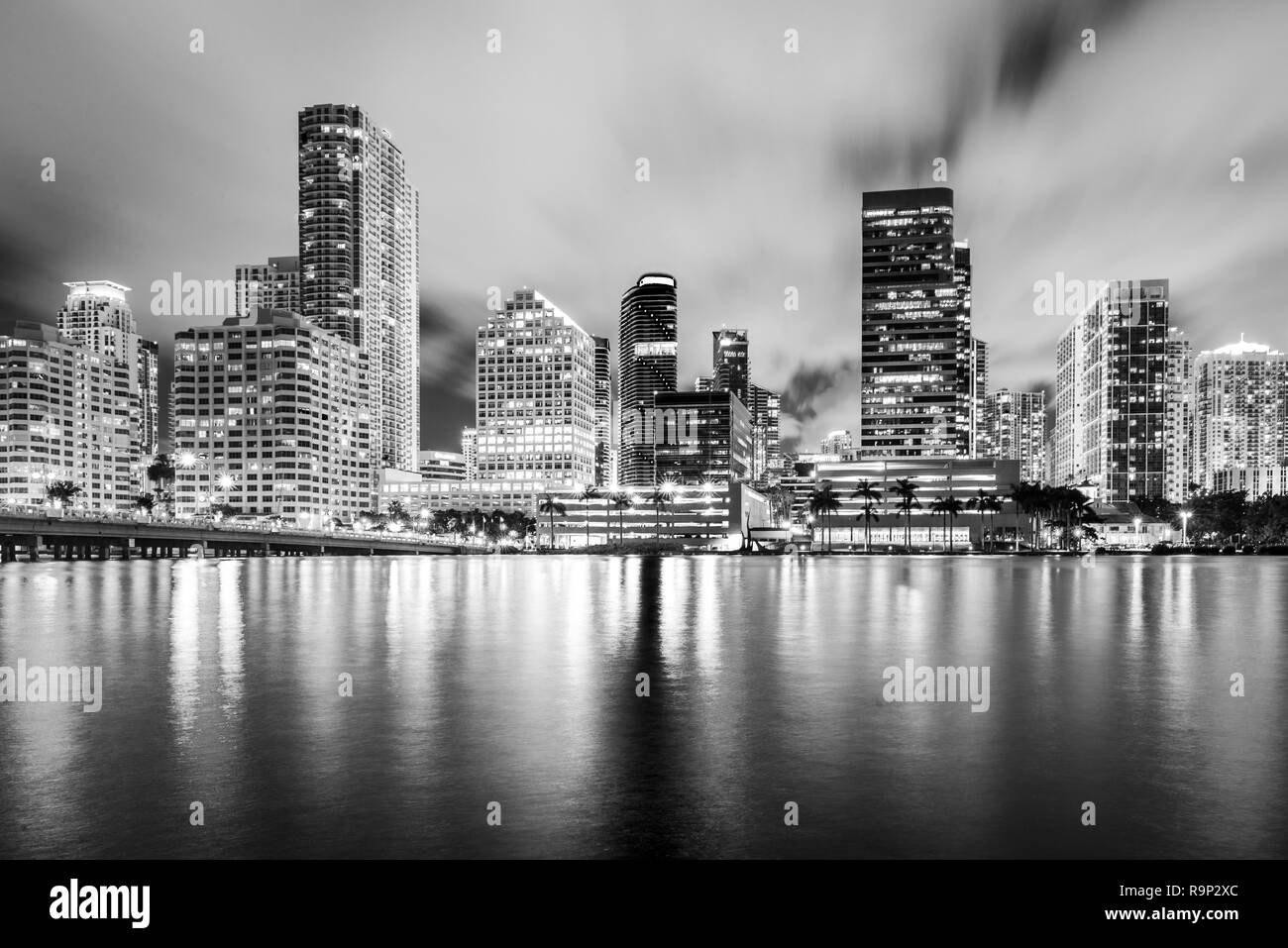 Miami City Night Skyline with River and Buildings Editorial Stock Image