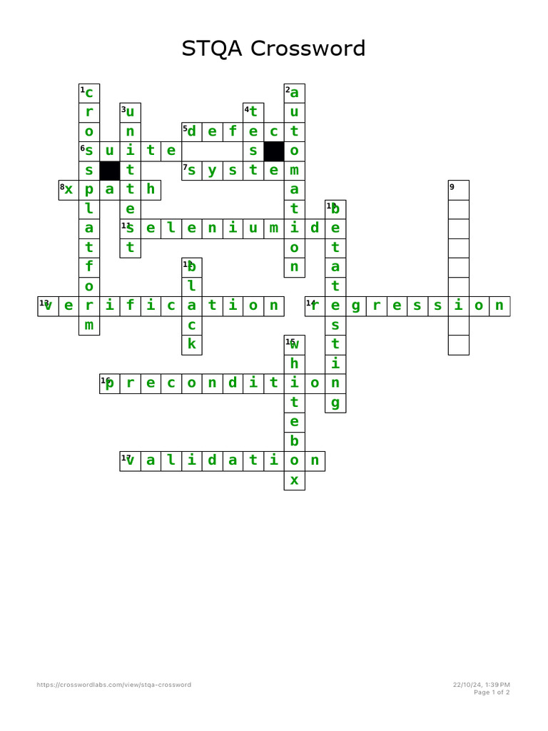 STQA Crossword Crossword Labs PDF Software Testing Information