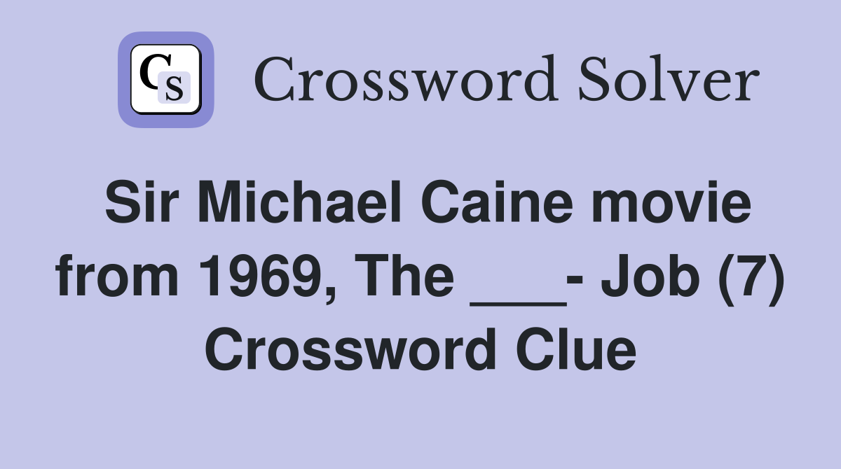 Sir Michael Caine movie from 1969 The Job (7) Crossword Clue