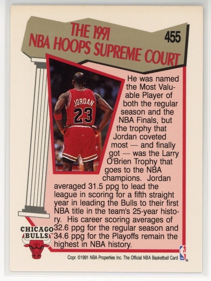 Michael Jordan 1991 Hoops #455 Supreme Court Price Guide Sports Card
