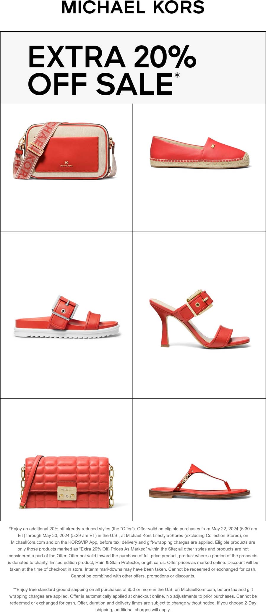 Extra 20% off sale items at Michael Kors ditto online #michaelkors