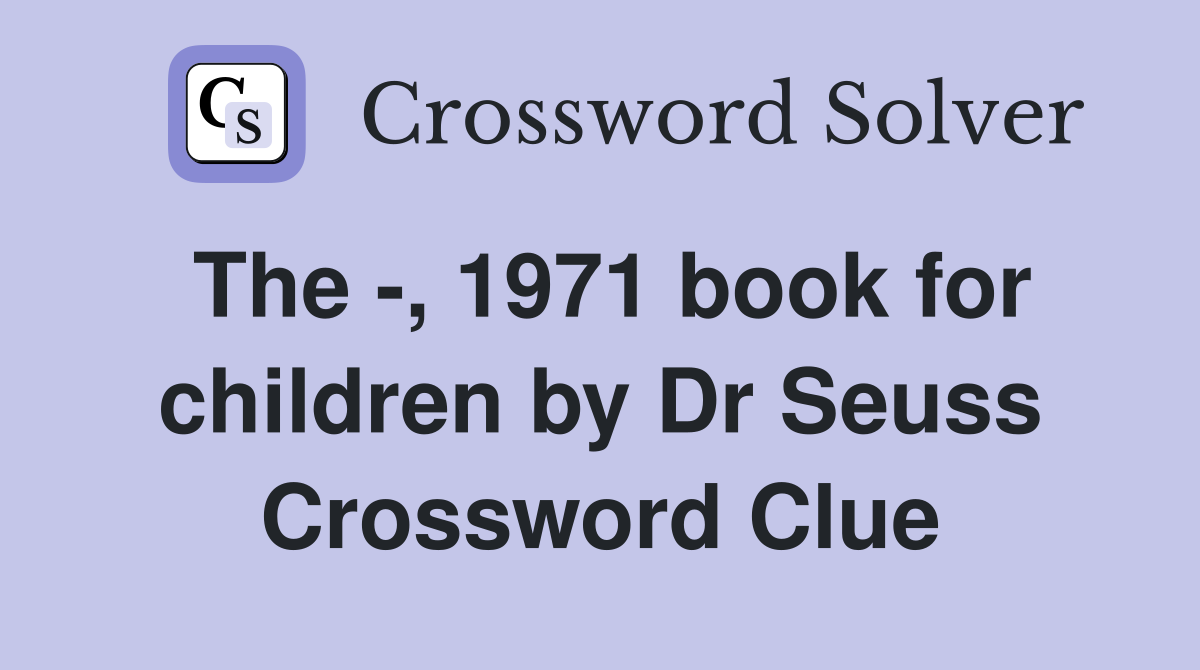 The 1971 book for children by Dr Seuss Crossword Clue Answers