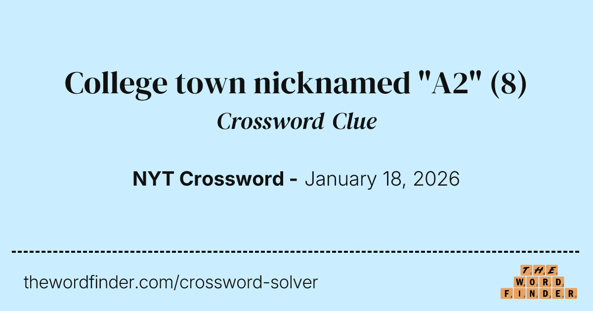 College town nicknamed A2 Crossword Clue NYT Crossword Answers