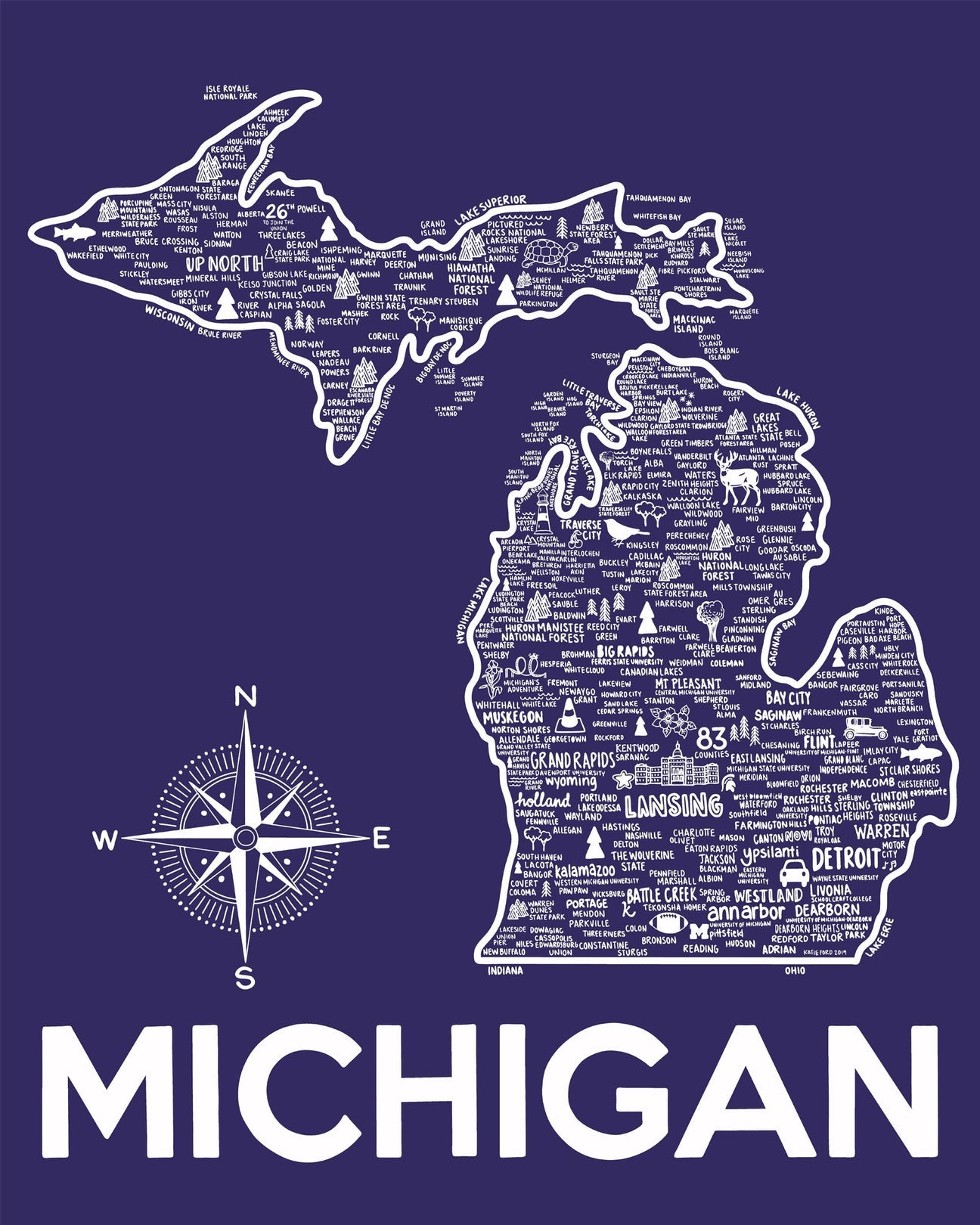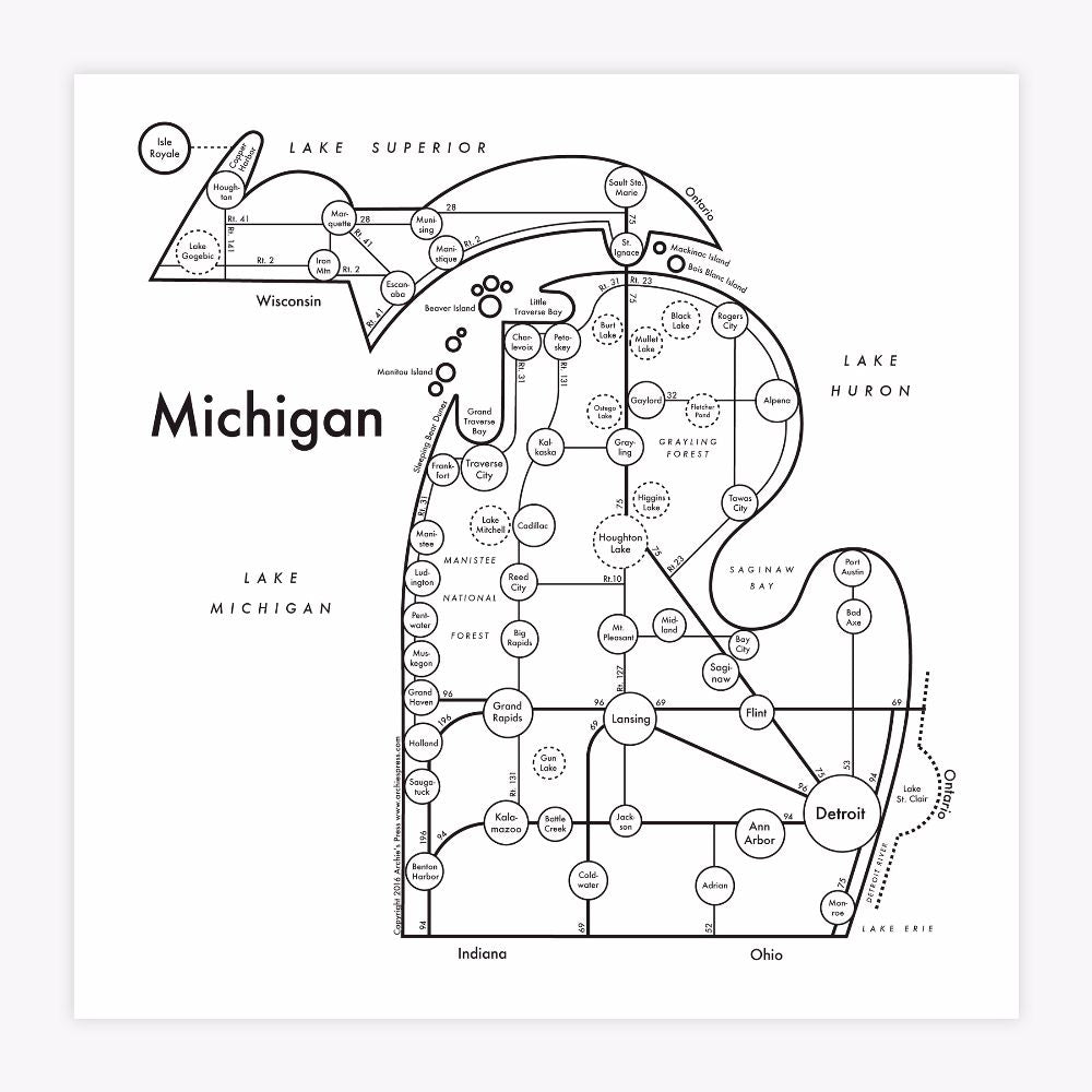 Michigan Map Print Archie #39 s Press