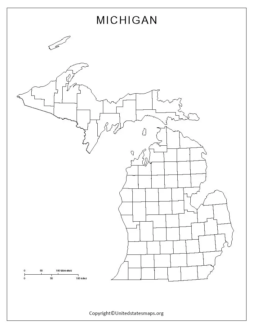 Michigan Map Template printable pdf download
