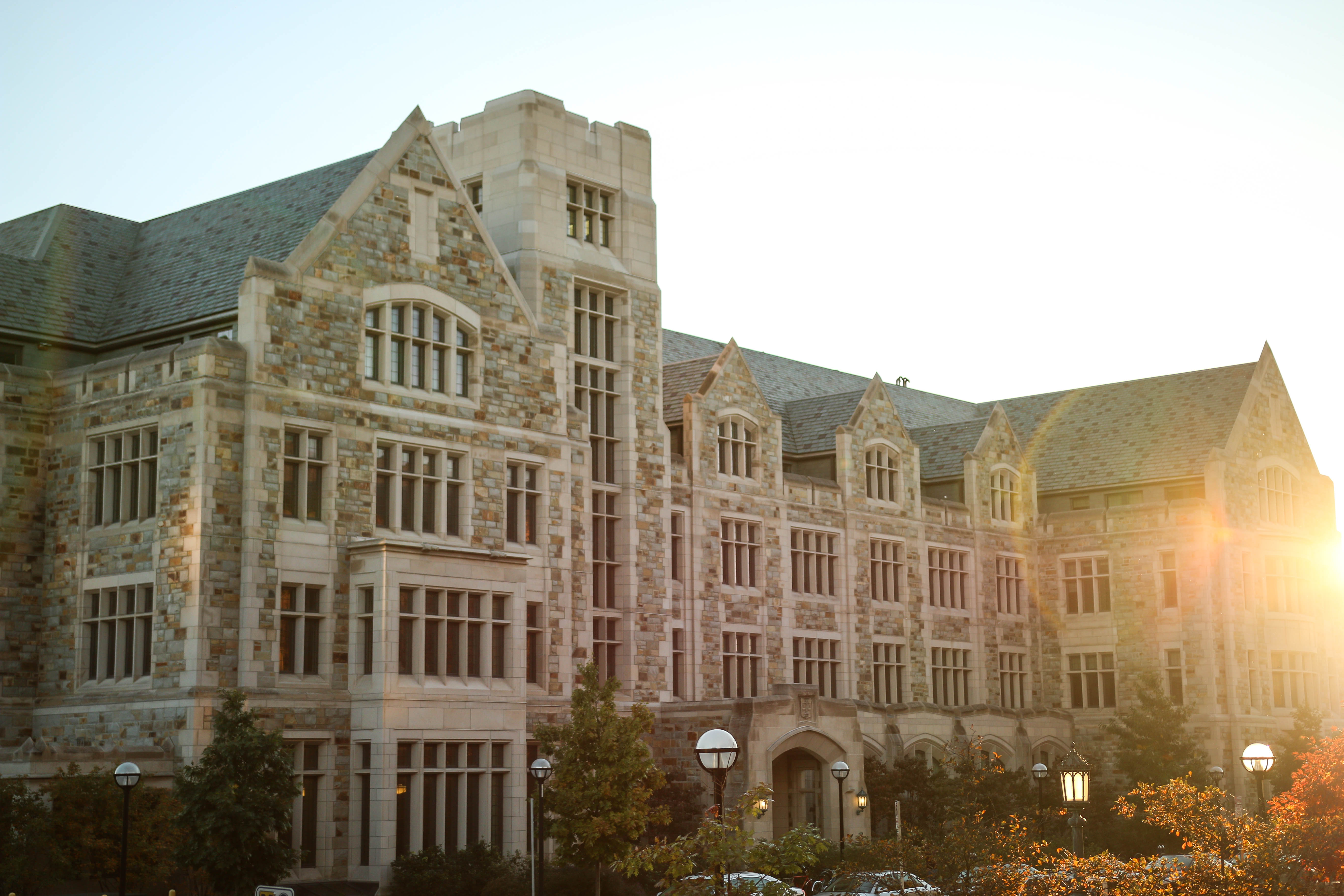 Historic University Building with Autumn Trees and Pathway Stock Image