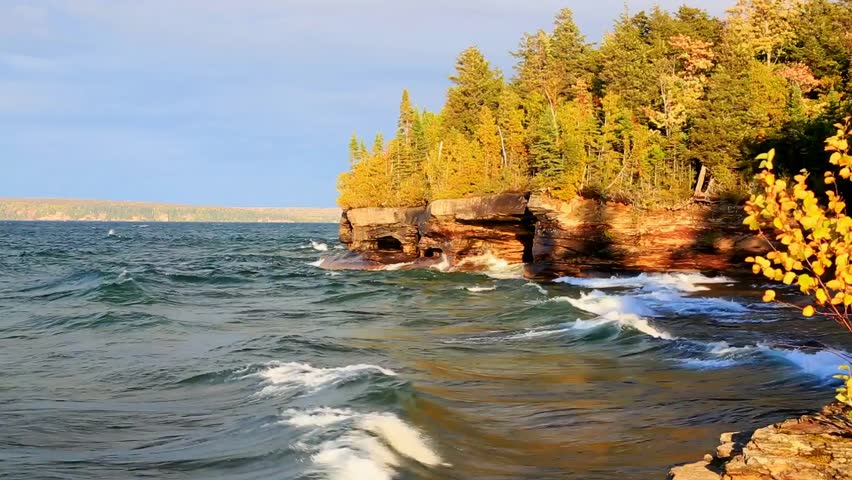 Shoreline landscape view in Upper Peninsula Michigan image Free
