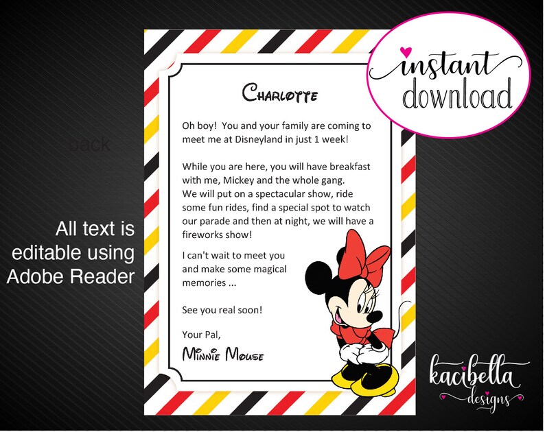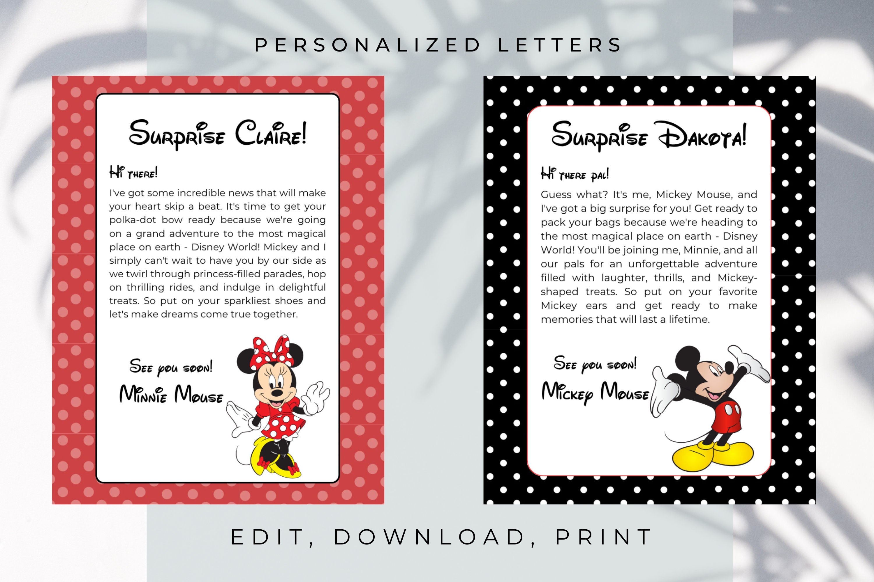 Editable Letters From Mickey and Minnie Disneyland Surprise Reveal