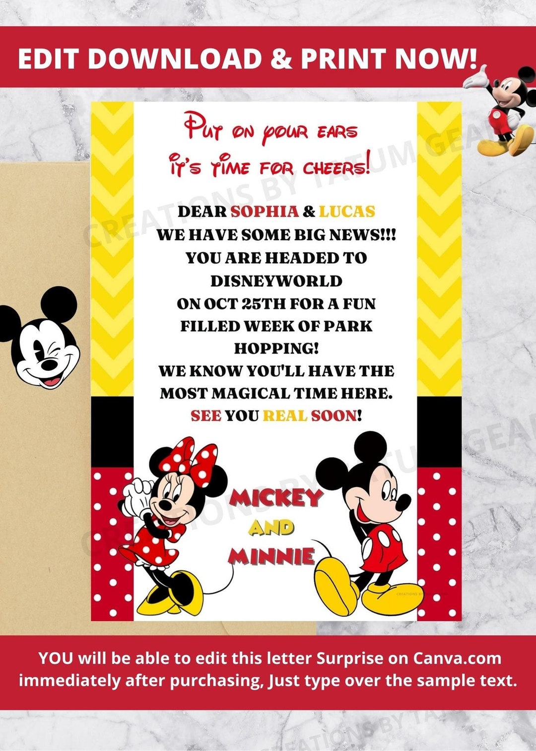 Editable Letters From Mickey and Minnie Trip Reveal Etsy UK