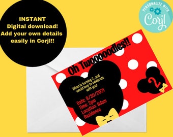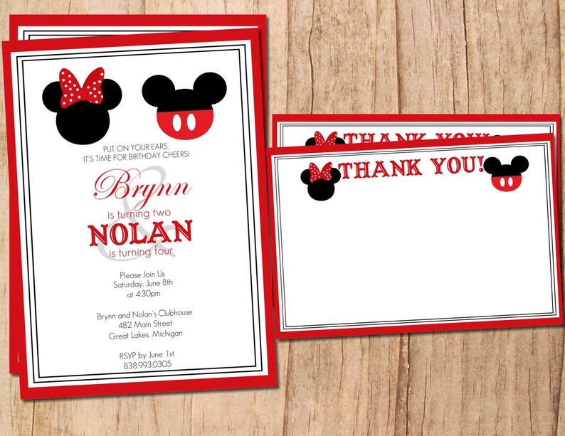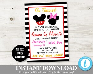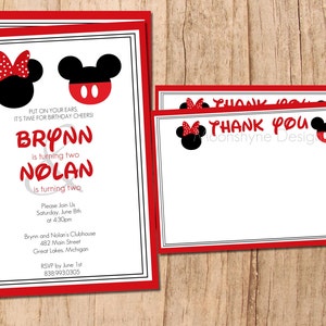 Mickey and Minnie Mouse Inspired Birthday Invitation Twin Sibling