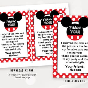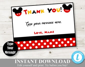 Mickey Mouse Thank You Card INSTANT DOWNLOAD Printable Mickey Thank