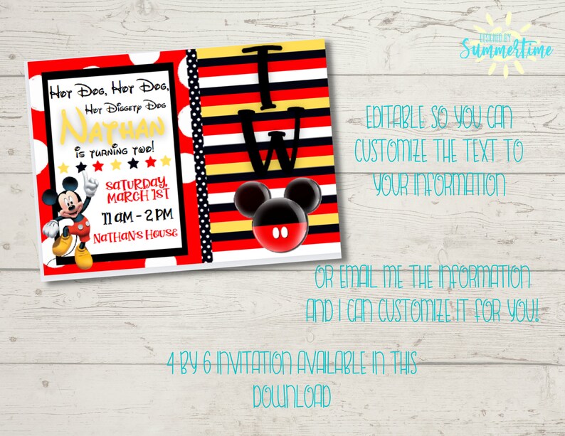 Editable Mickey Mouse Birthday Invitation Bundle Mickey Birthday Theme