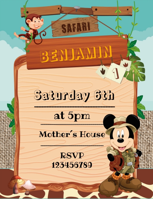 Mickey Safari invitation Template PosterMyWall