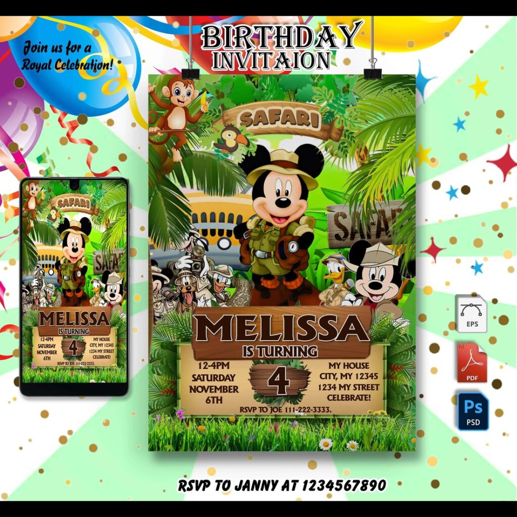 Mickey safari digital invitation customizable and printable Artofit