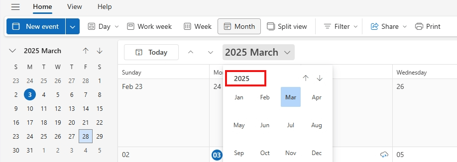 My outlook shared calender in browser shows wrong year on and off