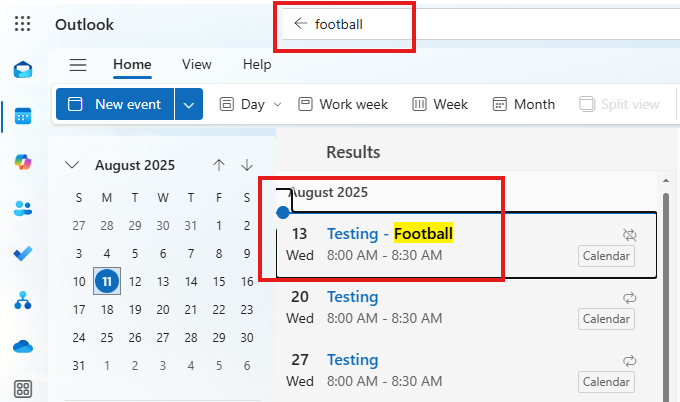 New Outlook Calender Search only shows previous 12 months and future