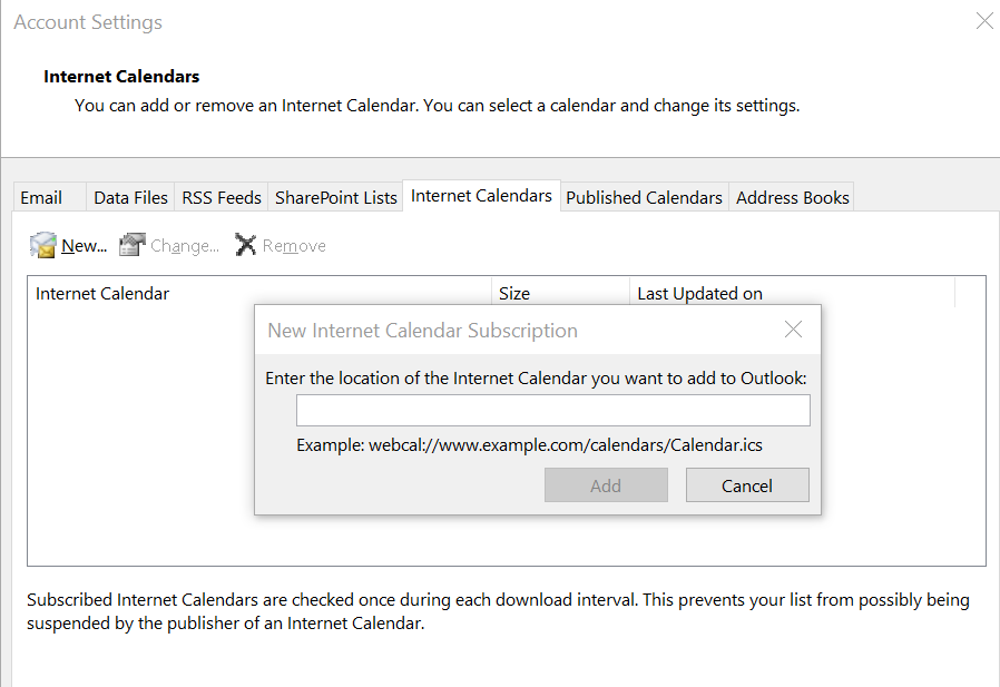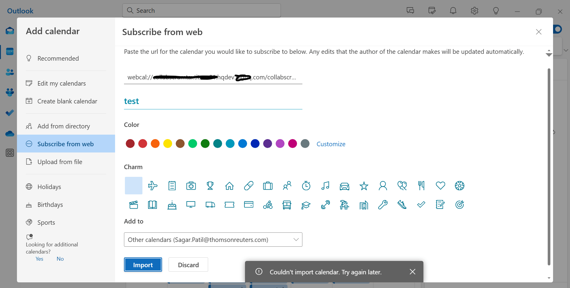 Unable to import Ical from Subscribe from Web in New Outlook Desktop