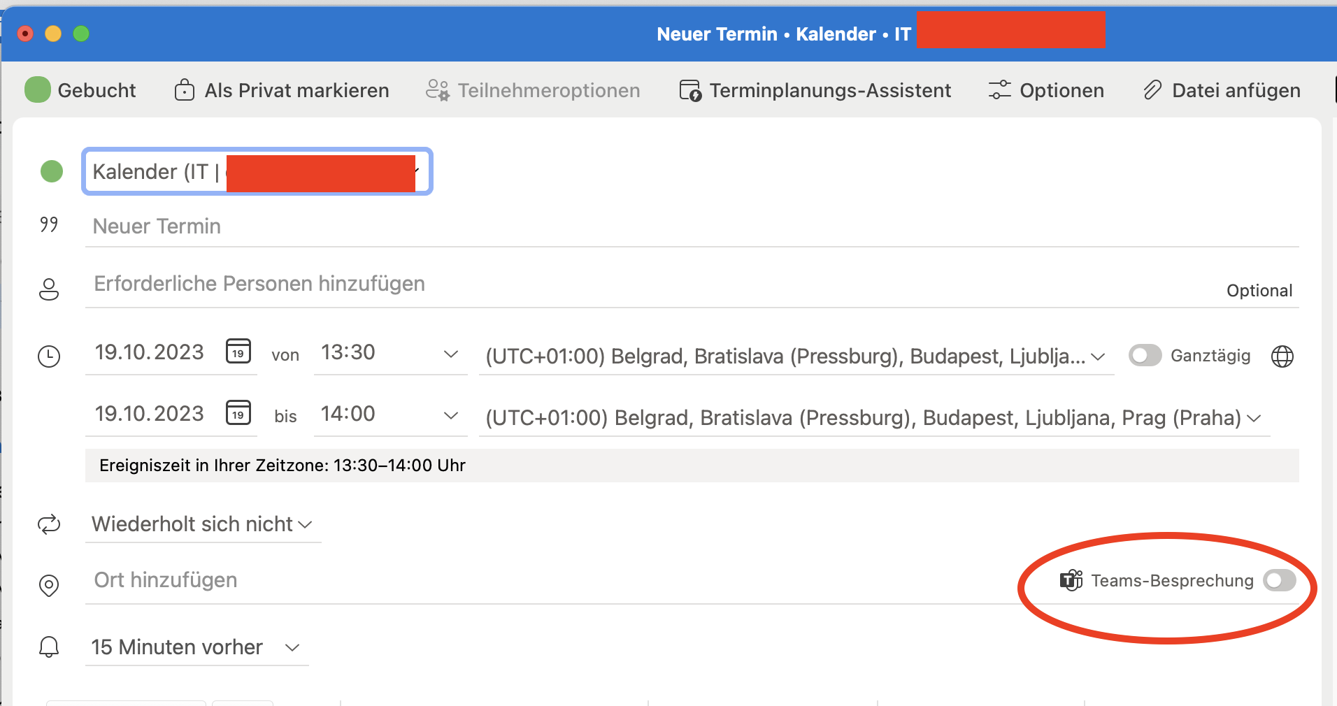 Missing quot Teams Meeting quot toggle in Outlook for macOS calender for one