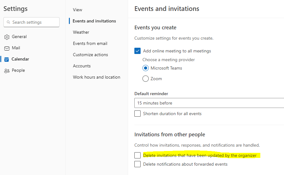 How to get rid of Calender Events in Outlook Preview Microsoft