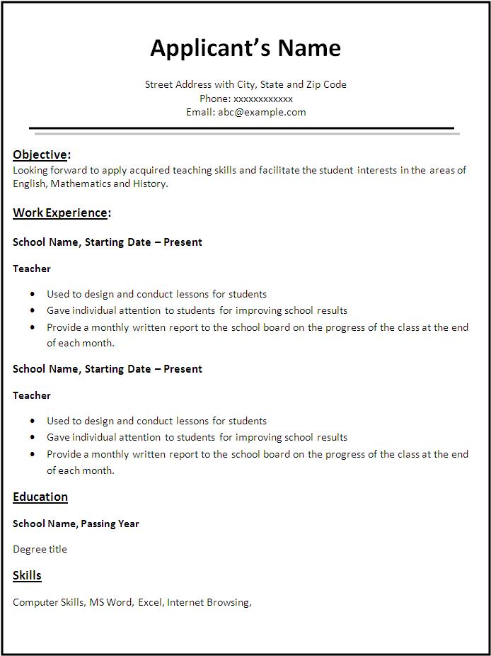 Resume Format for Teacher Job