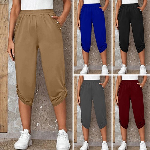Women Pants Mid rise Sweat Absorbent Summer Casual Simple Mid calf