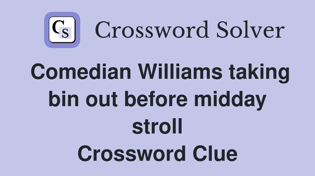Comedian Williams taking bin out before midday stroll Crossword Clue