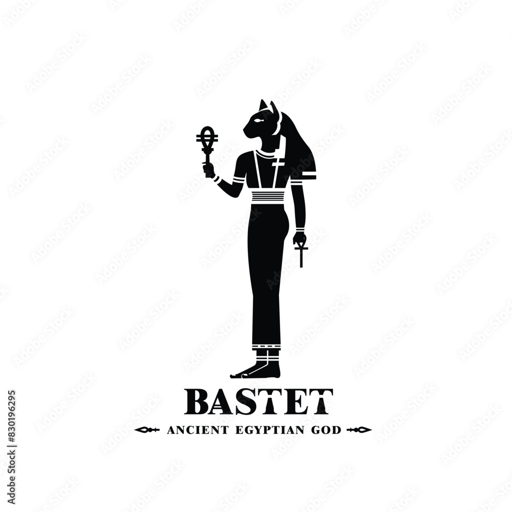 Ancient egypt god of protection bast silhouette middle east ruler cat