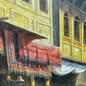 Vintage Ottoman Bazaar Market Painting on Canvas Vibrant Ottoman Era