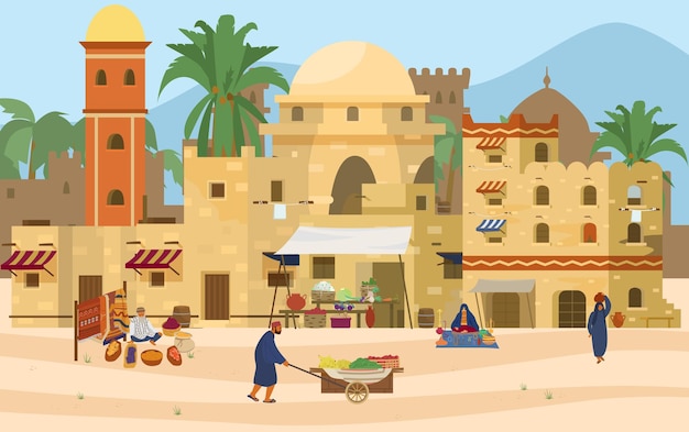 Illustration Middle Eastern Marketplace Bazaar cartoon Middle Eastern
