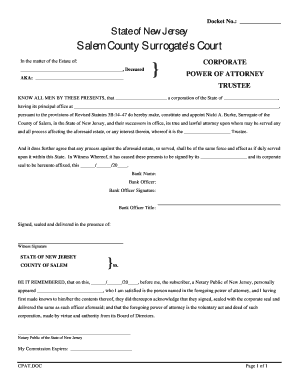 Fillable Online : State of New Jersey Salem County Surrogates Court In