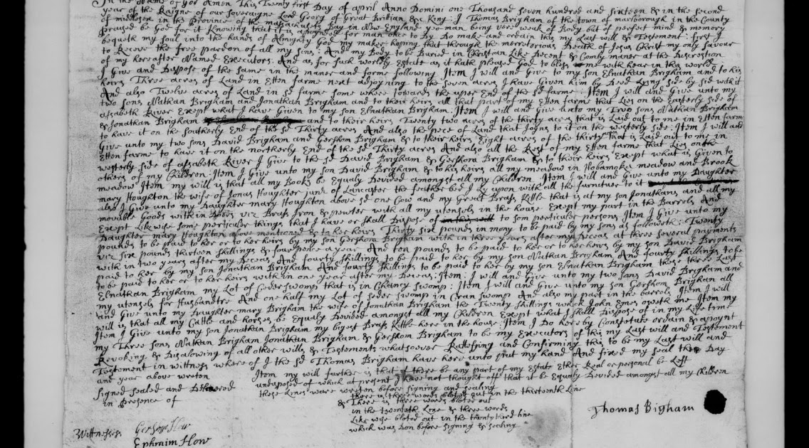Genea Musings: Amanuensis Monday 1716 Will of Thomas Brigham (1641