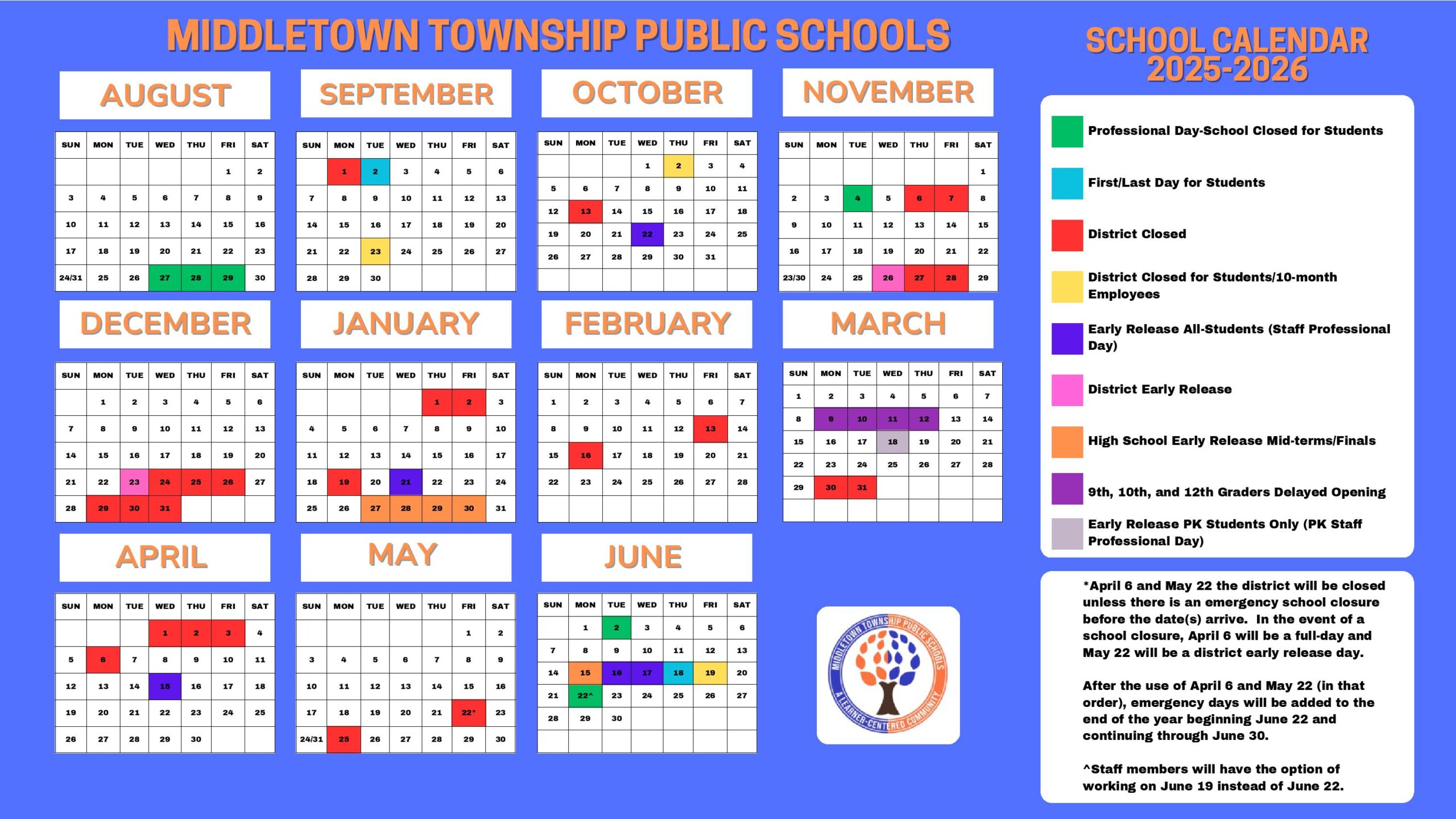 Middletown School District Calendar 2025 2026 PDF (New Jersey)